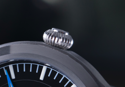 Een mooi voorbeeld daarvan is bijvoorbeeld deze understated ronde kroon, die duidelijk een moderne variant is van de grote, ronde kronen die de originele vliegeniershorloges hadden: