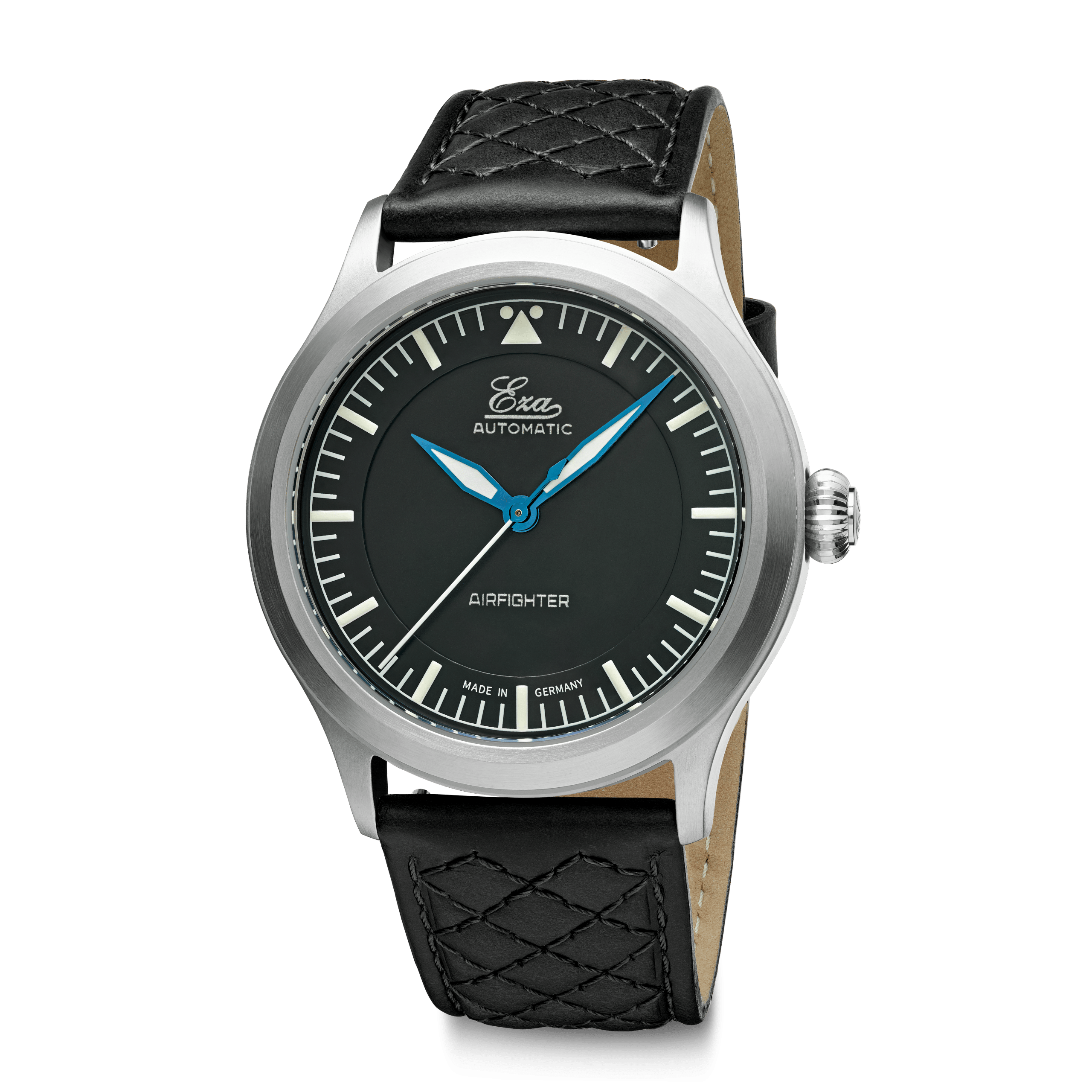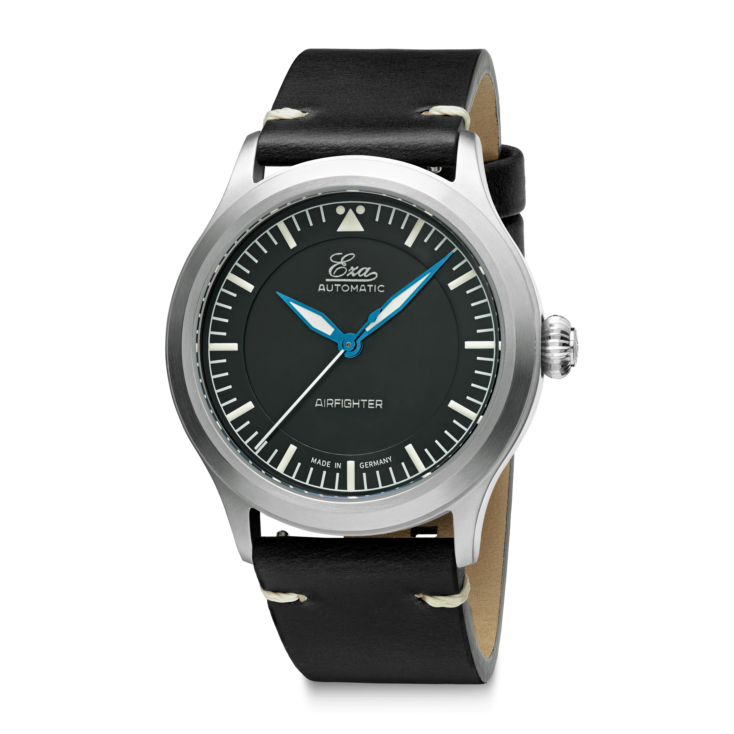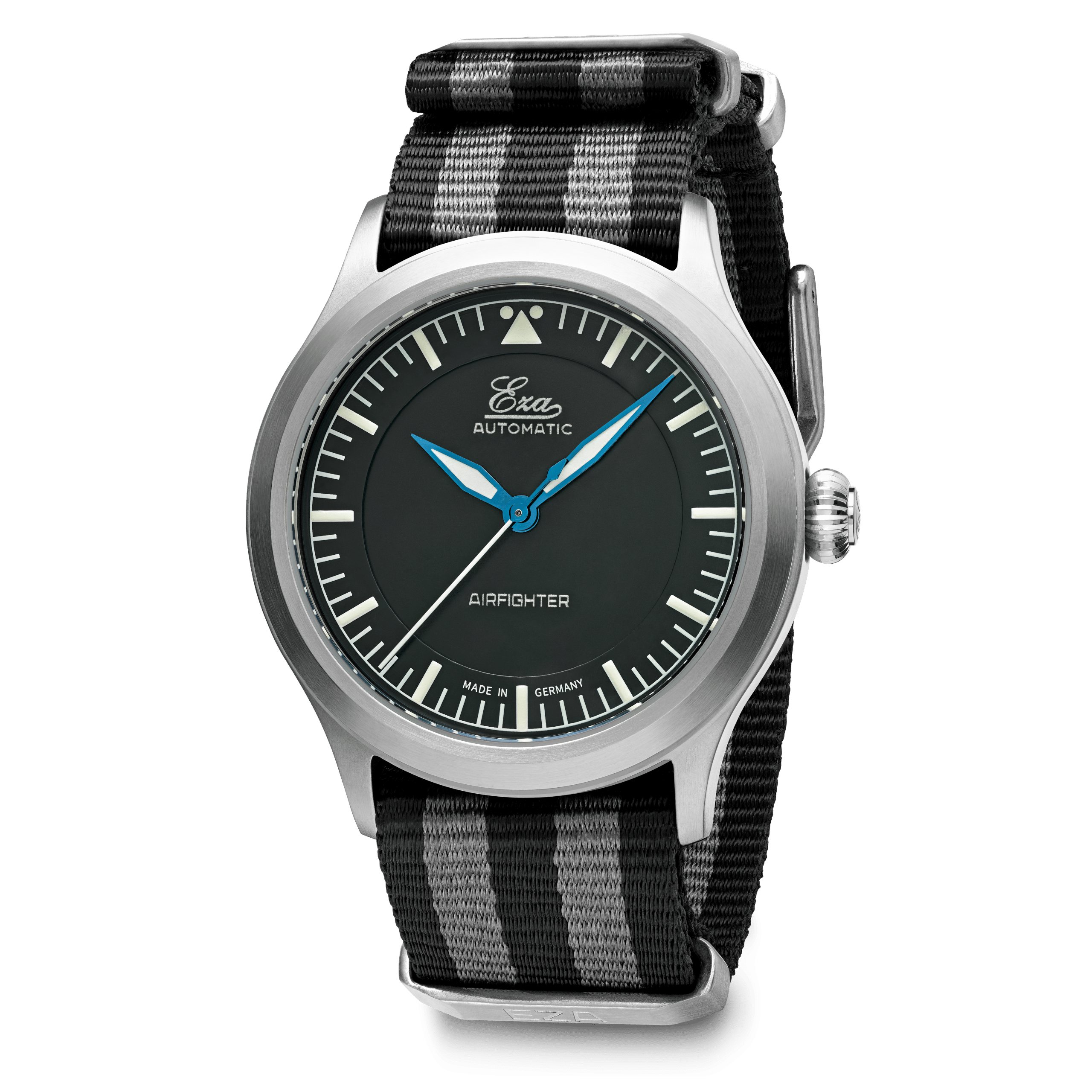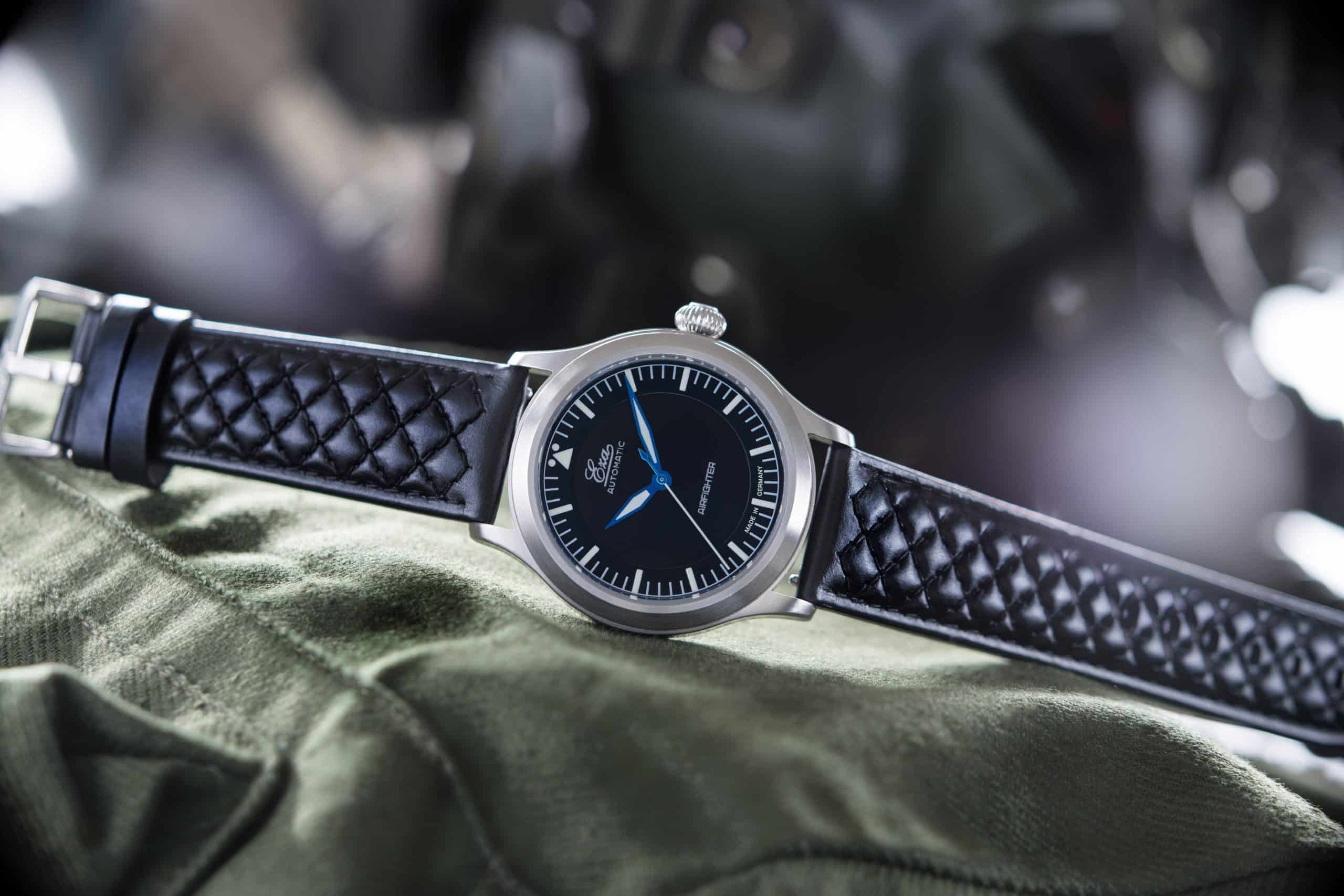 Voici l'Eza AirFighter , une interprétation moderne des montres de pilote militaires classiques, agrémentée de détails subtils. L'Eza AirFighter arbore une allure élégante avec sa finition brossée et sa fine bande brillante sur le côté. À l'intérieur, on trouve un mouvement automatique suisse, calibre SW-200, réglé en six positions.