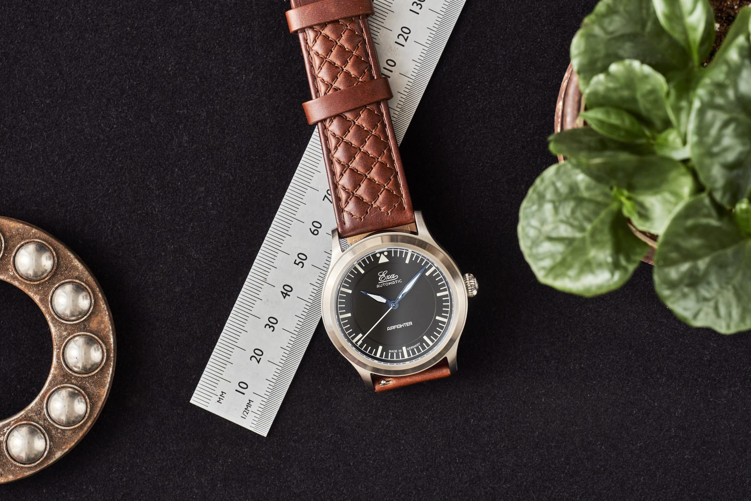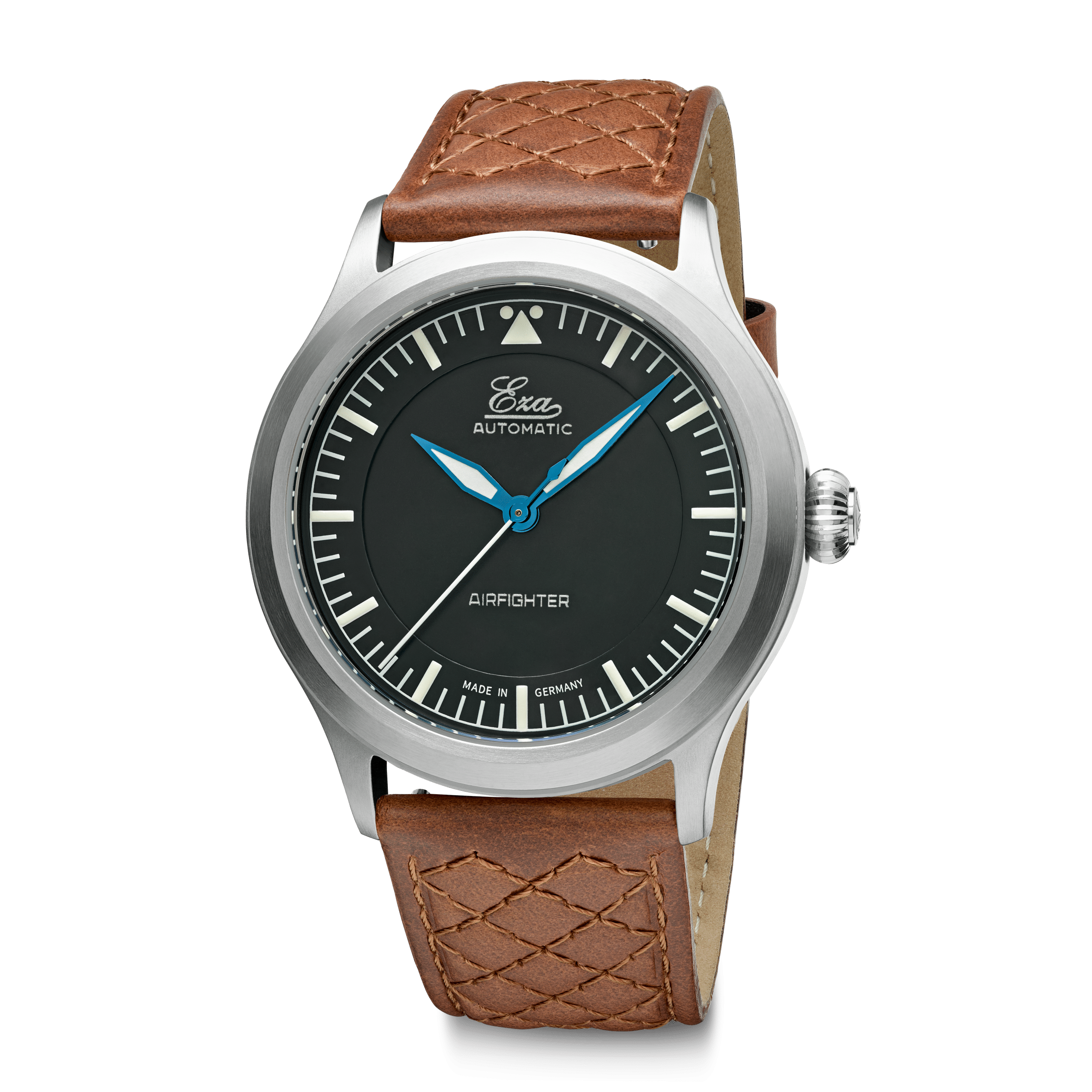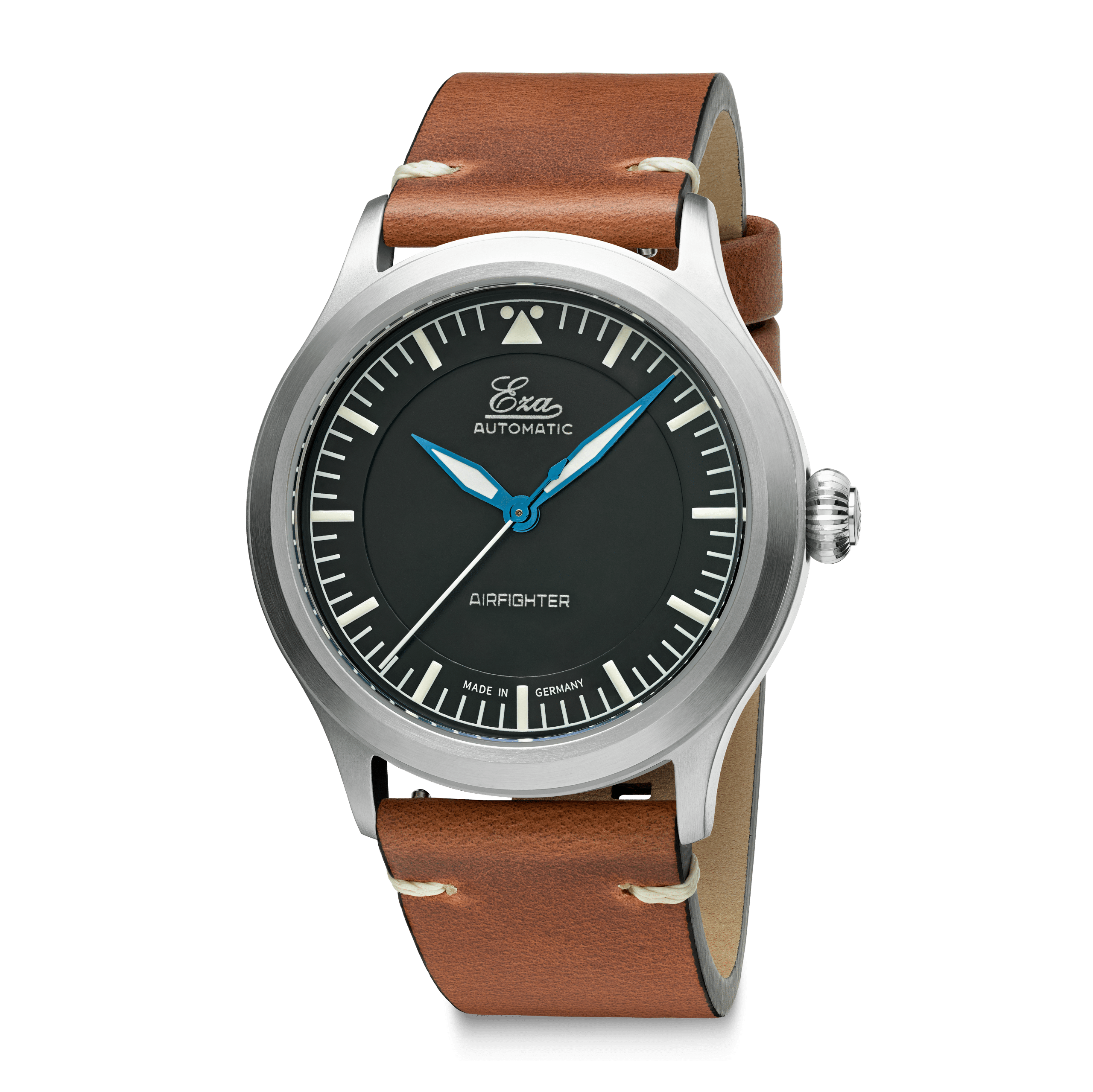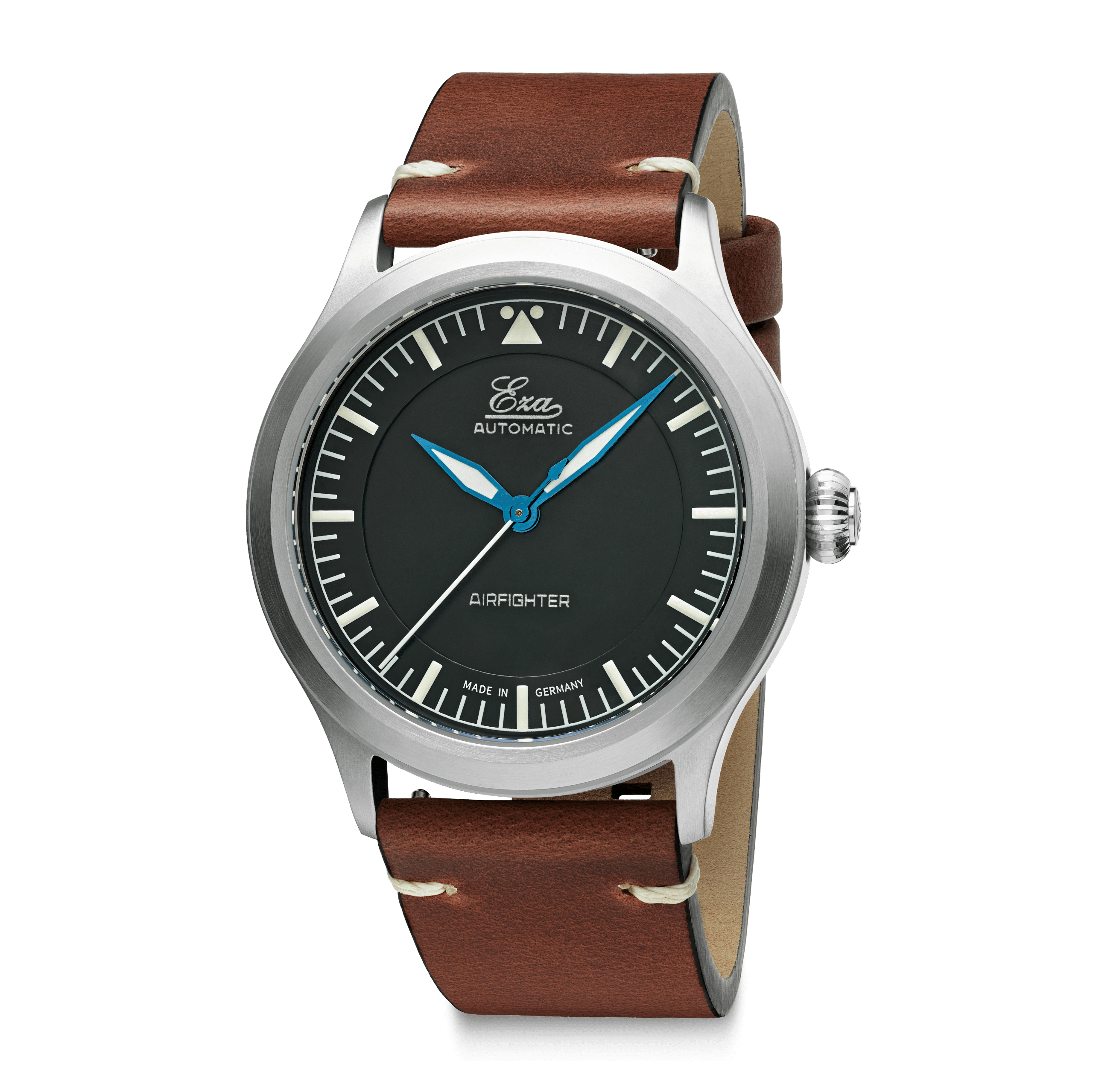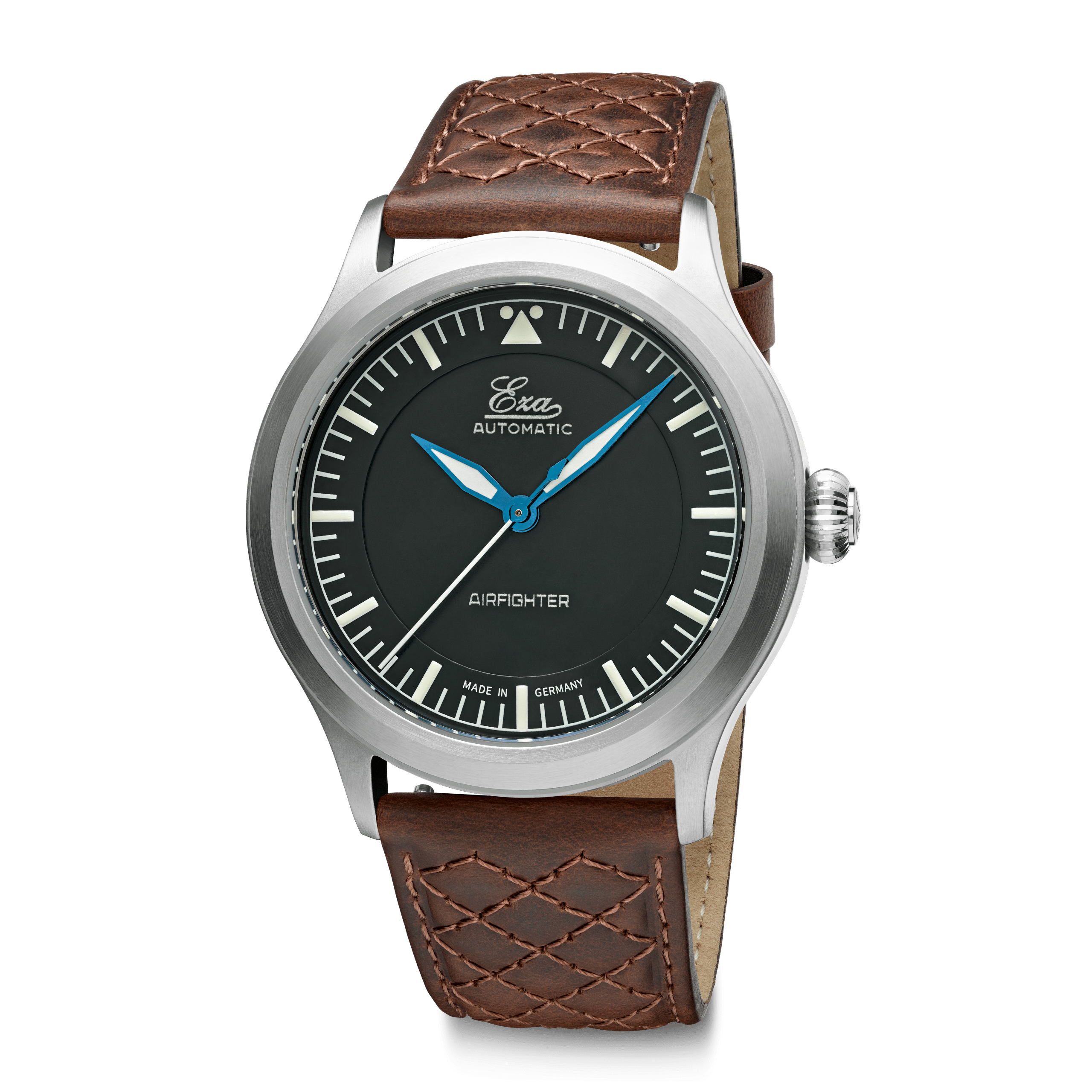 Voici l'Eza AirFighter , une interprétation moderne des montres de pilote militaires classiques, agrémentée de détails subtils. L'Eza AirFighter arbore une allure élégante avec sa finition brossée et sa fine bande brillante sur le côté. À l'intérieur, on trouve un mouvement automatique suisse, calibre SW-200, réglé en six positions.